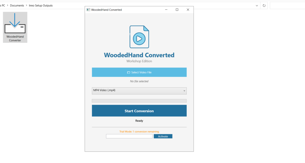 Once your settings are dialed in, click the “Convert” button. WoodedHand will get to work immediately, processing your video with high-speed efficiency while maintaining every grain of quality.